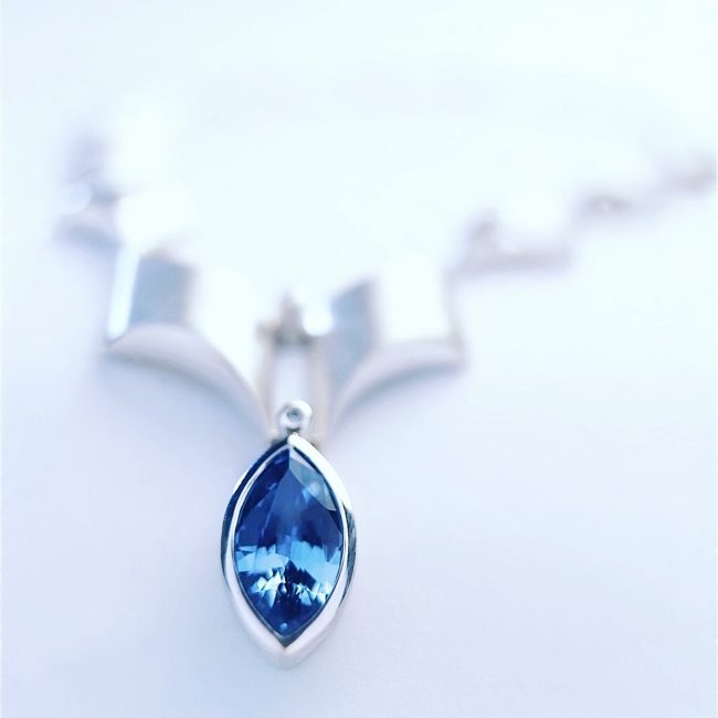 Collier in 925 Silber mit Topas-Navette und Brillanten